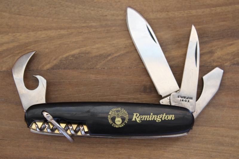 Remington, για ήπιες «indoor» και «outdoor» δραστηριότητες. Διαθέτει πέντε εξαρτήματα, μεταξύ των οποίων ανοιχτήρι φελλού, ανοιχτήρι φιάλης μπύρας, μικρομεσαίο σουγιά τύπου drop point και μικρό σουγιά τύπου sheep foot. Η λαβή του είναι από μαύρο πολυμερές υλικό. Το συνολικό μήκος του πολυσουγιά (ανοιχτού) είναι 155 χιλιοστά. Κλειστός το μήκος του είναι 93 χιλιοστά. Το βάρος του είναι 84 γραμμάρια. Διαθέτει κρίκο για ανάρτηση στην ζώνη. Λεπτομέρειες μπορείτε να δείτε στις φωτογραφίες της Αναλυτικής Παρουσίασης.