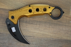 μεγέθους, σχεδιασμένος για γρήγορο χειρισμό με το ένα χέρι. Η λάμα του είναι κυρτή, με την κόψη εσωτερικά, στο σχέδιο λάμας «νύχι του δράκου», από ανοξείδωτο ατσάλι 440Α, με μαύρη αντιθαμβωτική βαφή, μήκους 74 χιλιοστών. Η λαβή του σουγιά είναι μεταλλική, με οπές μείωσης βάρους, αποσυναρμολογούμενη με τορκς, με μεταλλικό κλιπ προσάρτησης στην ζώνη και με «δαχτυλίδι» στο πίσω μέρος. Ο μηχανισμός ασφάλισης της λάμας είναι τύπου liner lock. Το συνολικό μήκος του σουγιά (ανοιχτού) είναι 205 χιλιοστά. Το βάρος του είναι 201 γραμμάρια. Προσφέρεται σε χάρτινο κουτί του κατασκευαστή κατάλληλο για συσκευασία δώρου. Λεπτομέρειες μπορείτε να δείτε στις φωτογραφίες της Αναλυτικής Παρουσίασης.
