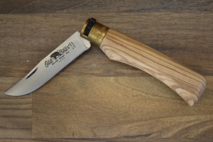 BearOlive X-Large, γενικής χρήσης. Οι σουγιάδες της σειράς Old Bear, με το επαναστατικό περιστροφικό κλείδωμα λάμας, αποτελούν ευρεσιτεχνία της ιστορικής εταιρείας μαχαιριών Antonini, που κατατέθηκε το 2015 στα 90α γενέθλια της εταιρείας (έτος ίδρυσης 1925). Η λάμα του είναι από ανοξείδωτο ατσάλι 420, μήκους 100 χιλιοστών. Η λαβή του είναι από ξύλο ελιάς. Το συνολικό μήκος του σουγιά (ανοιχτού) είναι 225 χιλιοστά. Το βάρος του είναι περίπου 83 γραμμάρια. Προσφέρεται σε χάρτινο κουτί του κατασκευαστή, με το λογότυπο της σειράς Old Bear. Λεπτομέρειες μπορείτε να δείτε στις φωτογραφίες της Αναλυτικής Παρουσίασης.
