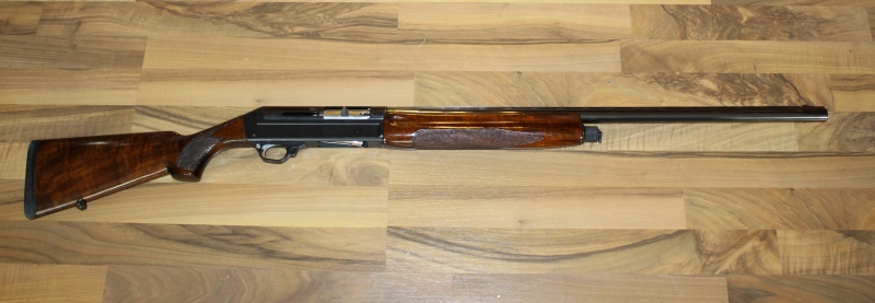 με μηχανισμό αδρανείας, κατασκευασμένο στην Ιταλία το 1975, διαμετρήματος 12, με την θρυλική για πολλούς γαλλική κάννη του εργοστασίου Manufrance που χρησιμοποιούσε η Benelli στα πρώτα της βήματα, μήκους 70 εκατοστών, με αεριζόμενη ρίγα, με θαλάμη μήκους 70 χιλιοστών, με διάμετρο αυλού 18,35 χιλιοστών και με σταθερή σύσφιξη σφιχτού ντεμί (*** – 6/10). Κοντάκι πιστολέ με εκ των υστέρων τοποθετημένο λαστιχένιο πέλμα με θυρίδες, συνολικού μήκους 36,5 εκατοστών. Το βάρος του όπλου είναι 3.210 γραμμάρια.