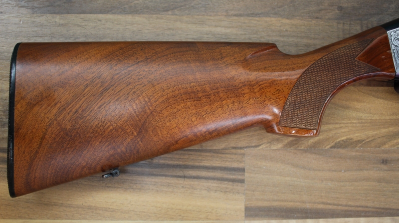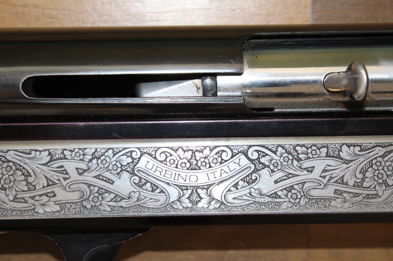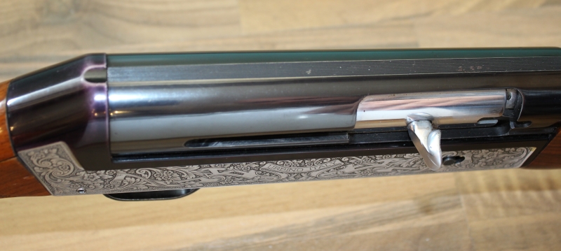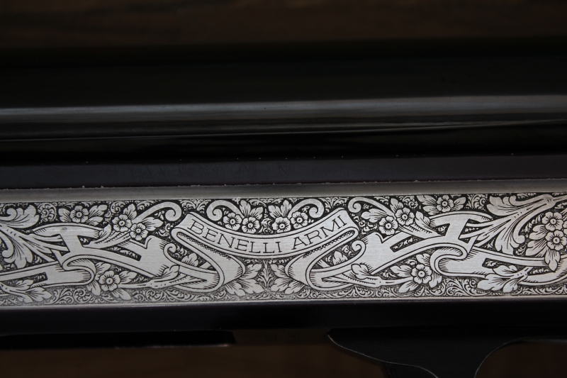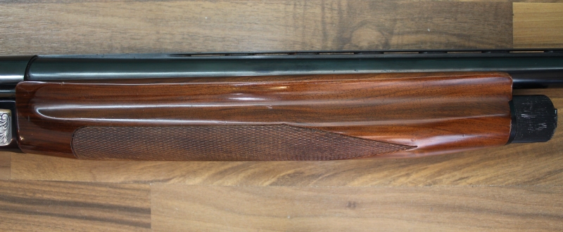 με μηχανισμό αδρανείας κατασκευασμένο στην Ιταλία το 1982, διαμετρήματος 12, με κάννη μήκους 61 εκατοστών και αεριζόμενη ρίγα, με θαλάμη μήκους 70 χιλιοστών, με διάμετρο αυλού 18,3 χιλιοστών και με εξωτερικές εναλλασσόμενες συσφίξεις (διαθέτει μόνο το προστατευτικό). Κοντάκι πιστολέ με αυθεντικό πέλμα από βακελίτη του κατασκευαστή συνολικού μήκους 35,3 (35,6 αν συνυπολογίσουμε την κυρτότητα του πέλματος) εκατοστών. Το βάρος του όπλου είναι 3.220 γραμμάρια.
