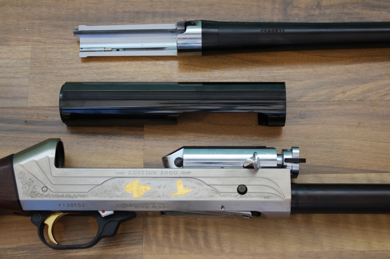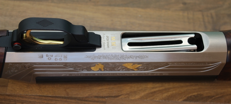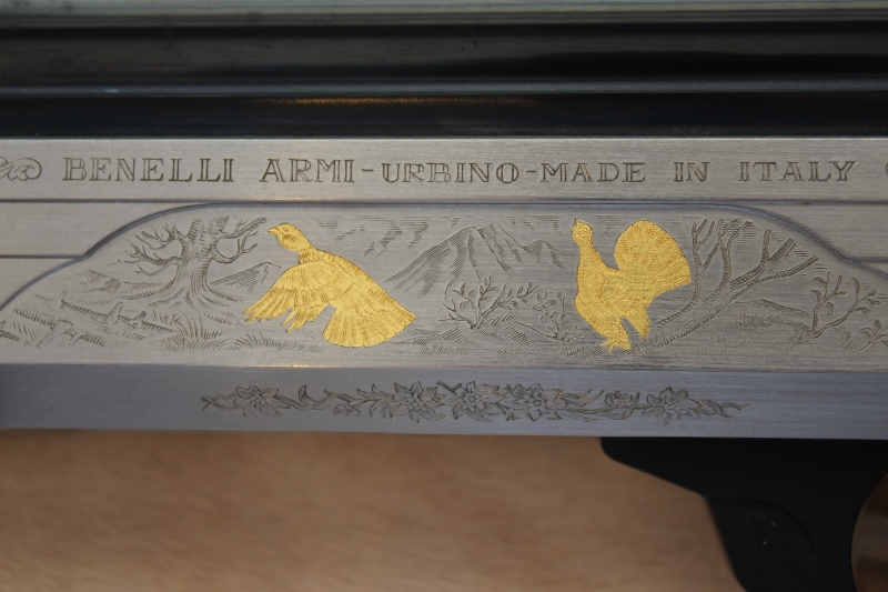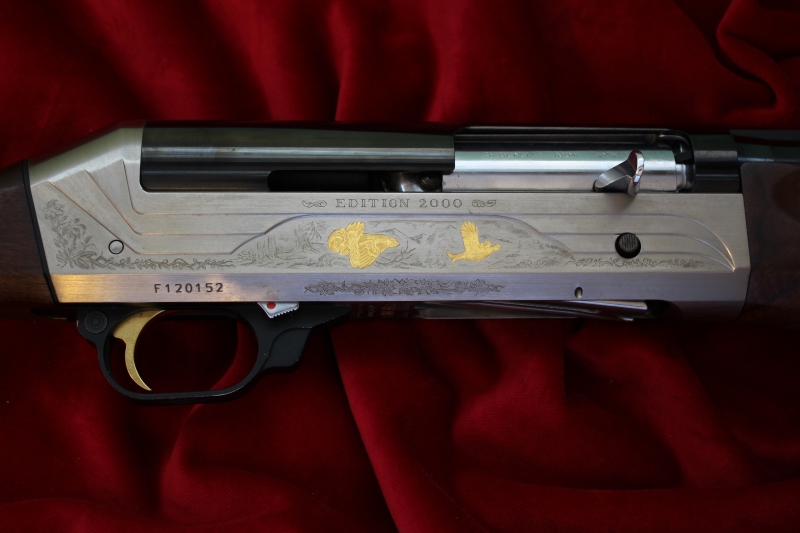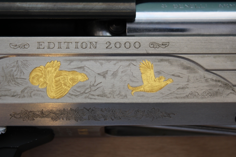 συλλεκτική έκδοση «Edition 2000», που κυκλοφόρησε σε 2000 αριθμημένα κομμάτια (το συγκεκριμένο είναι το Νο139 από 2000), αυτογεμές με μηχανισμό αδρανείας κατασκευασμένο στην Ιταλία το 2000, διαμετρήματος 12, με κάννη μήκους 65 εκατοστών, με θαλάμη magnum μήκους 76 χιλιοστών, με διάμετρο αυλού 18,3 χιλιοστών και με εσωτερικές εναλλασσόμενες συσφίξεις (διατίθεται μαζί με το όπλο μόνο η σύσφιξη των ***). Το όπλο φέρει χειροποίητο σκάλισμα και χρυσά ένθετα, στην αριστερή πλευρά ένα ζεύγος ουρόγαλων, στην δεξιά πλευρά ένα ζεύγος λυροπετεινών και στην ράχη της βάσης το κεφάλι ενός αγγλικού σέττερ. Κοντάκι πιστολέ με αρκετά ωραία νερά (η αλήθεια είναι ότι έχουμε δει και πολύ καλύτερα σε επετειακές εκδόσεις Benelli) και με ξύλινο πέλμα συνολικού μήκους 35,8 εκατοστών. Το βάρος του όπλου είναι 3.356 γραμμάρια (χωρίς τσοκάκι ή 3.376 γραμμάρια με προσαρτημένο τσοκάκι).