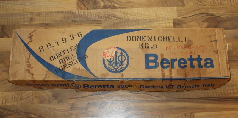 Κατάσταση: ΚΑΙΝΟΥΡΓΙΟ!!! (το όπλο παρέμεινε μισό αιώνα στο κουτί του, όπως και οι εναλλάξιμες καινούργιες συνομήλικες κάννες του. Αγοράστηκε στην Ιταλία από μη κυνηγό και οι μοναδικές φθορές του εντοπίζονται στα χάρτινα κουτιά του όπλου και των καννών και σε ένα τριχωειδές ράγισμα στο πλαστικό πέλμα του κοντακιού, λόγω πολυκαιρίας). Λεπτομέρειες του όπλου μπορείτε να δείτε στις φωτογραφίες στην «Αναλυτική Παρουσίαση» που συνοδεύει την παρούσα.
