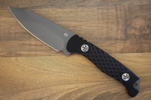 (μηχανοποίητο), για δραστηριότητες υπαίθρου. Η λάμα του είναι κατασκευασμένη από ανοξείδωτο ατσάλι 440Α, έχει μήκος 110 χιλιοστά και έντονα αμφίκοιλη κόψη. Η λαβή του είναι από ξύλα σταθεροποιημένα σε ρητίνη, με οπή για κορδόνι στο πίσω μέρος που φέρει εσωτερικά μεταλλική ενίσχυση. Συνοδεύεται από δερμάτινη θήκη και χάρτινο κουτί, κατάλληλο για συσκευασία δώρου.