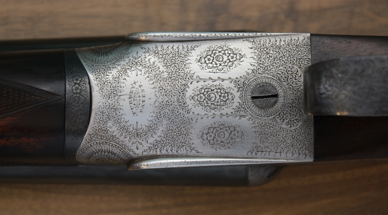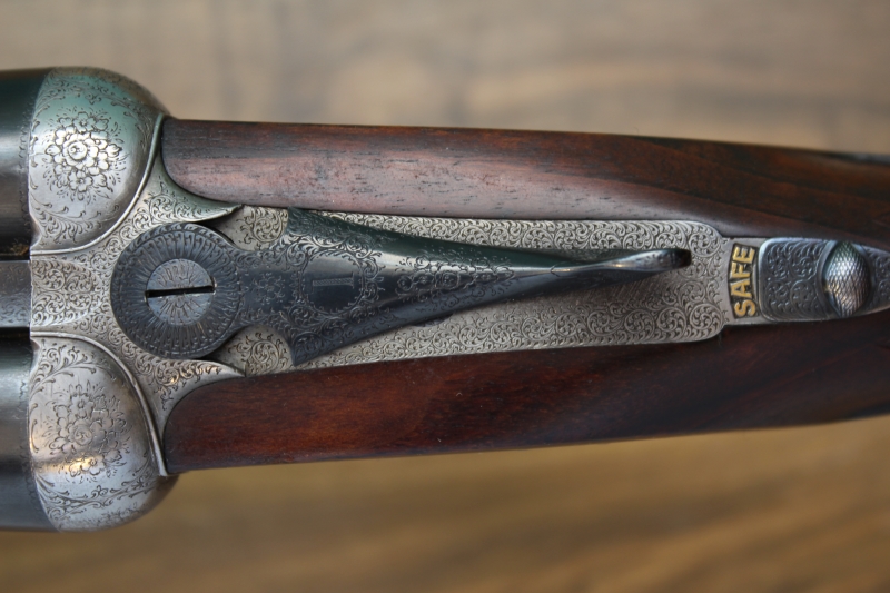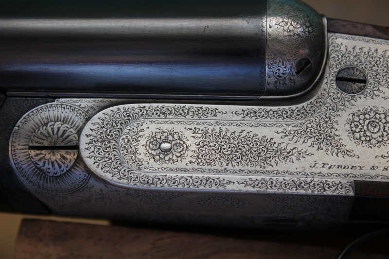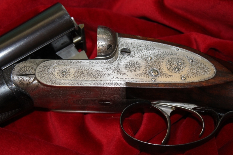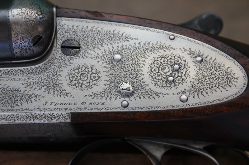Δείκτες όπλισης με σκαλιστό βέλος και το κλασικό «rose and scroll» σκάλισμα της Purdey ολοκληρώνουν την εικόνα αυτού του αριστουργήματος. Το συγκεκριμένο όπλο προέρχεται από ζευγάρι όπλων που συμπλήρωσε φέτος 120 χρόνια ζωής. Το Νο2 παρέμενε μακροσκοπικά αχρησιμοποίητο και πουλήθηκε άμα τη εμφανίσει του. Το συγκεκριμένο που εκτίθεται εδώ είναι το Νο1 και έχει προφανώς χρησιμοποιηθεί αρκετά, ενώ έχουμε εντοπίσει και την ελάχιστη αποδόμηση εσωτερικά στις κάννες του, 1/10 ως 1,5/10 του χιλιοστού, λόγω εσωτερικής λείανσης – honing. Το βάρος του όπλου είναι 2.965 γραμμάρια, συνδυασμένο με θεϊκό ζύγισμα!