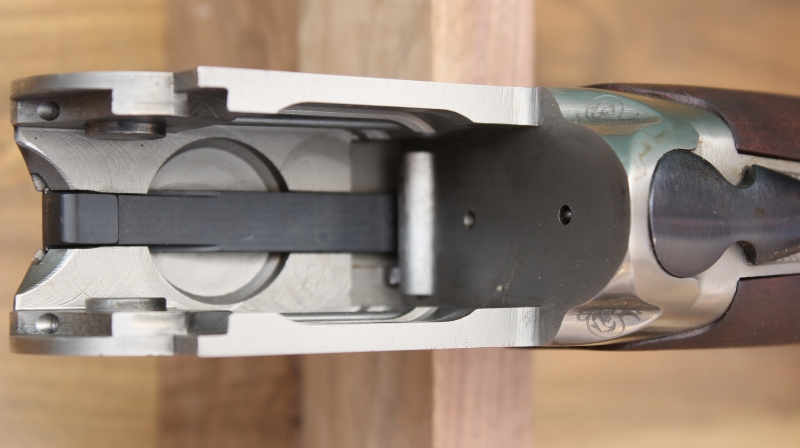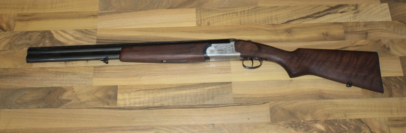 κατασκευασμένο στην Ιταλία το 2002, αλληλεπίθετο δίκαννο, διαμετρήματος 12, με μηχανισμό επί σκανδάλης, δισκάνδαλο, με αυτομάτους εξολκείς, με κάννες μήκους 61 εκατοστών, με διάμετρο αυλών 18,4 χιλιοστών, με θαλάμες magnum μήκους 76 χιλιοστών και εναλλασσόμενες συσφίξεις (δύο των ****, δύο των ***** και μία των **, συνολικά πέντε τσοκάκια). Οι κάννες φέρουν σφραγίδα δοκιμής 1.370 κιλών ανά τετραγωνικό εκατοστό. Κοντάκι πιστολέ με πέλμα από βακελίτη του κατασκευαστή, αλλά χωρίς σήμανση, συνολικού μήκους 37 εκατοστών (37,3 εκατοστών αν συνυπολογίσουμε και την κυρτότητα του πέλματος). Το βάρος του όπλου είναι 3.244 γραμμάρια.