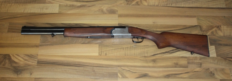 κατασκευασμένο στην Ιταλία το 1997, αλληλεπίθετο δίκαννο, διαμετρήματος 12, με μηχανισμό επί σκανδάλης, δισκάνδαλο, με απλούς εξολκείς, με κάννες μήκους 55 εκατοστών, με διάμετρο αυλών 18,4 χιλιοστών η κάτω κάννη και 18,5 χιλιοστών η επάνω κάννη, με θαλάμες magnum μήκους 76 χιλιοστών και συσφίξεις κύλινδρο (***** – 0/10) και στις δύο κάννες. Οι κάννες φέρουν αναδιπλούμενο «λαμάκι» και αντίστοιχο στόχαστρο για χρήση μονόβολων, ενώ φέρουν δοκιμασία 1370 κιλών ανά τετραγωνικό εκατοστό. Κοντάκι πιστολέ με πέλμα από βακελίτη του κατασκευαστή, αλλά χωρίς σήμανση, συνολικού μήκους 37,4 εκατοστών (επειδή το συνολικό μήκος του όπλου πρέπει βάσει του νόμου να είναι τουλάχιστον ένα μέτρο, αλλά εδώ είναι 99,2 εκατοστά, θα τοποθετηθεί στο κοντάκι ελαστικό μασίφ πέλμα, μήκους 2 εκατοστών, αγγλικού τύπου, αφού αφαιρεθεί το πέλμα από βακελίτη και πριν παραδοθεί το όπλο στον αγοραστή του). Το βάρος του όπλου είναι 2.950 γραμμάρια.