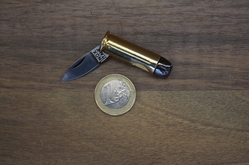 εξαιρετικά πειστική απομίμηση σφαίρας πιστολιού 44 magnum, με ανοξείδωτη λάμα συνολικού μήκους 30 χιλιοστών, συνολικό μήκος ανοιχτού σουγιά 70 χιλιοστών και βάρος 24 γραμμαρίων. Εντυπωσιακό μικρό δώρο και παράλληλα πρακτικότατο… μικροεργαλείο! Λεπτομέρειες μπορείτε να δείτε στις φωτογραφίες της Αναλυτικής Παρουσίασης.
